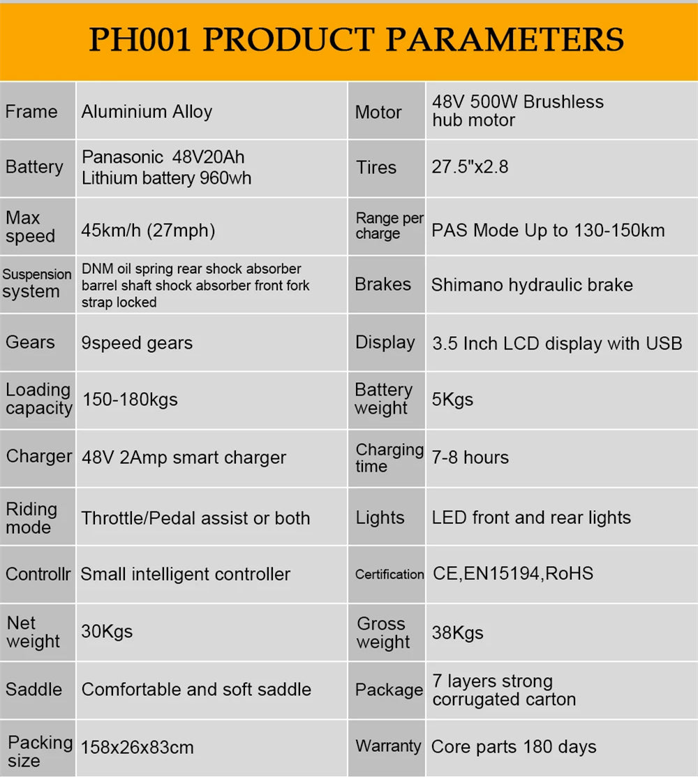 1.The Panasonic 48V/20AH removable lithium battery can be charged at home or in the office.After fully charged, you can ride about 40 to 50 mile. (According to the rider's weight, road conditions, wind speed, weather and other factors)