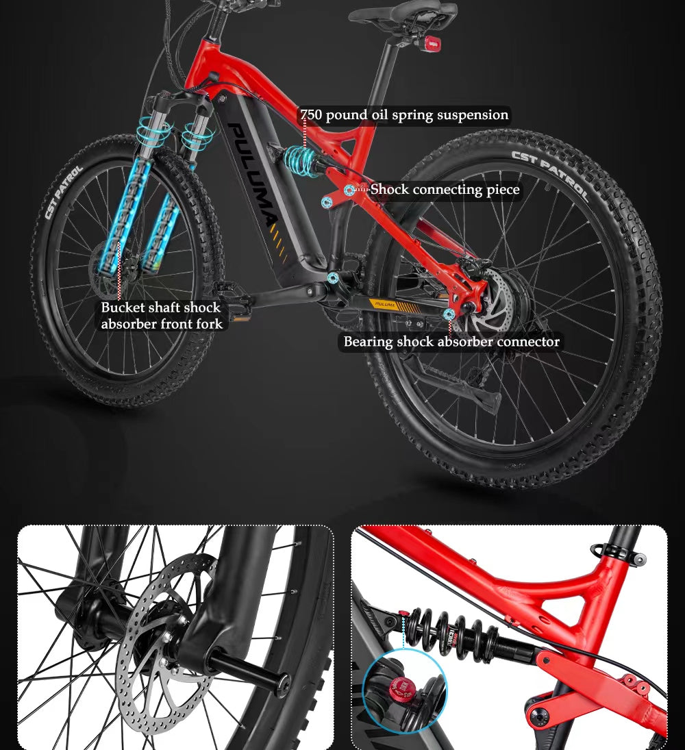 [Shimano hydraulic oil brake] Front and rear hydraulic disc brake design provides powerful braking capability. The automatic brake power-off function will ensure your riding safety.