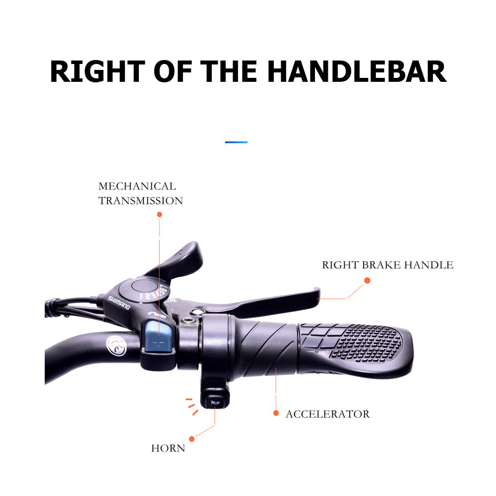 Tre körlägen: [Pedal Assist Mode]-Motorn hjälper dig med kontinuerlig kraft när du trampar cykeln. [Fullständigt elektriskt läge] - Vrid bara på gasreglaget (behöver inte trampa). [Manuellt läge]-Trampa på pedalen precis som den vanliga cykeln.